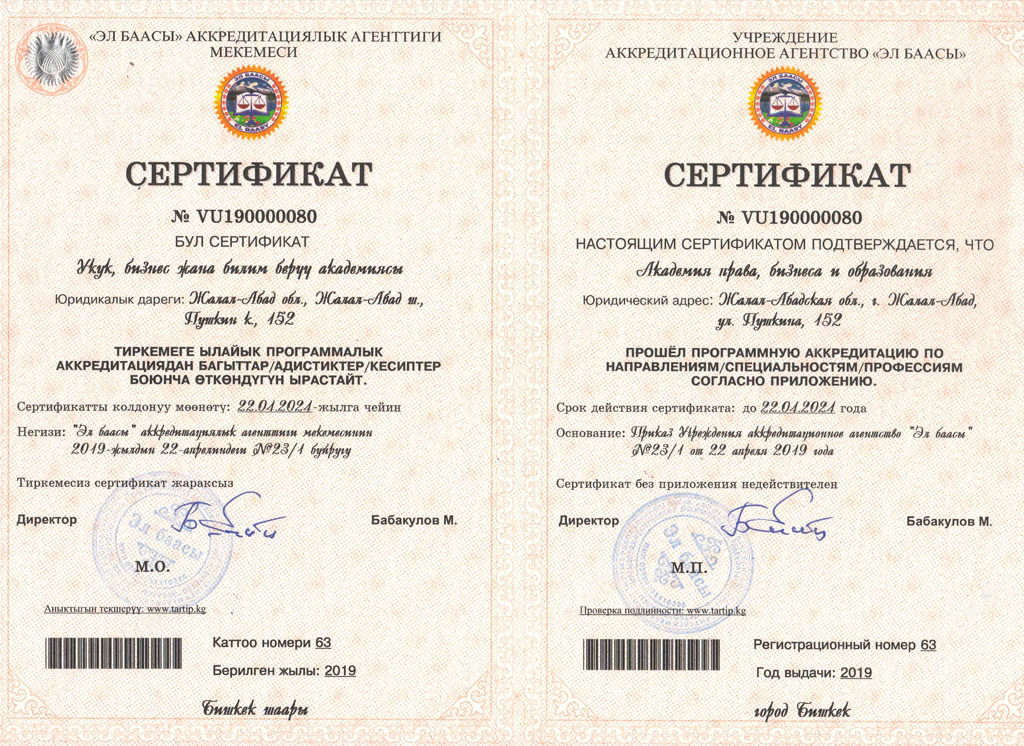 Кыргызская Республика 715600, г. Жалал-Абад, ул. Пушкина,152 [email protected]