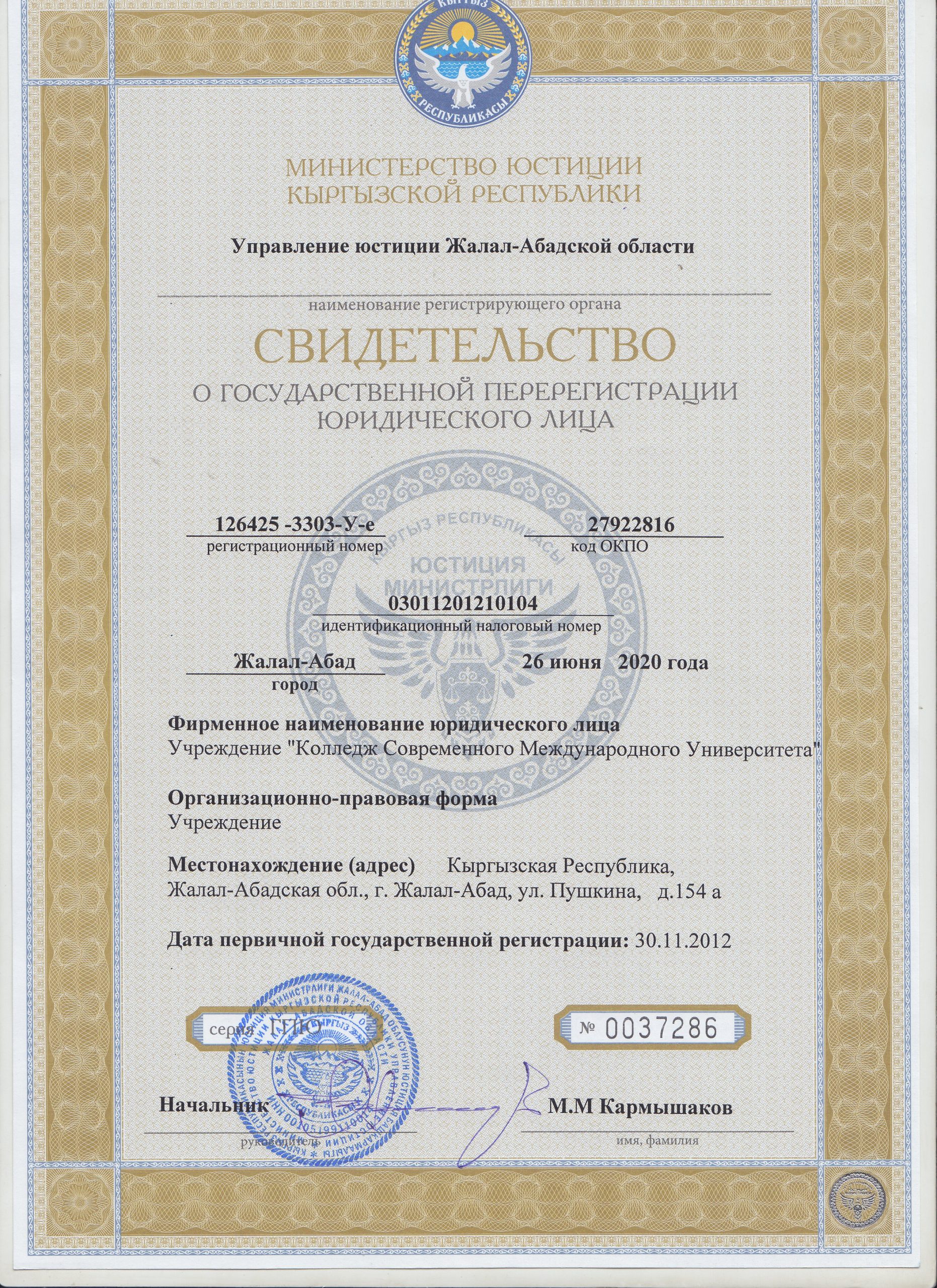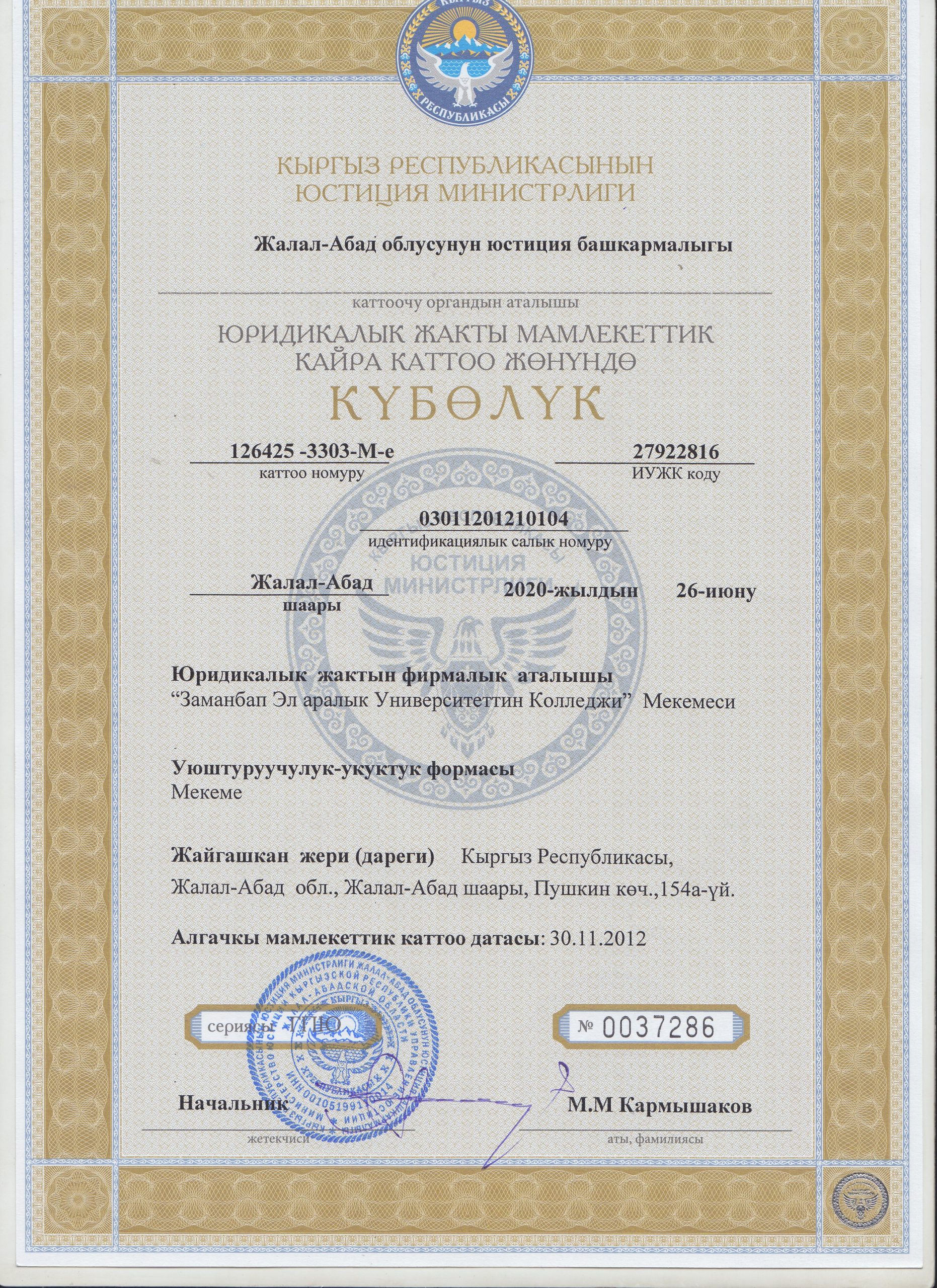 Кыргызская Республика 715600, г. Жалал-Абад, ул. Пушкина,152 [email protected]