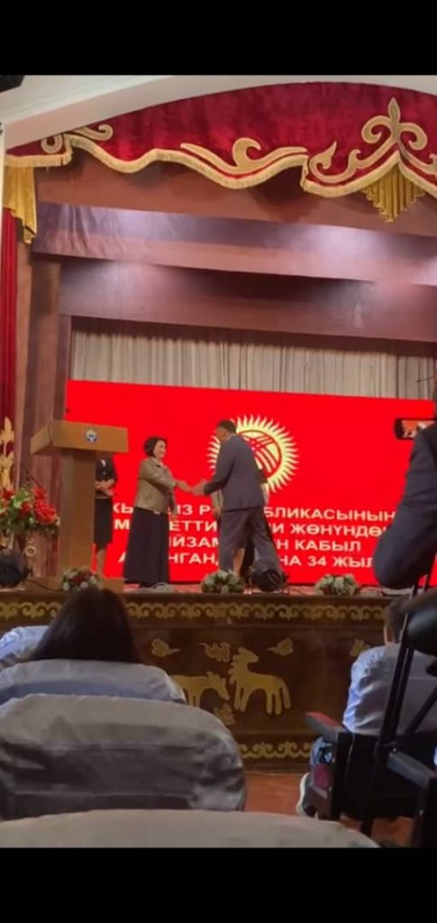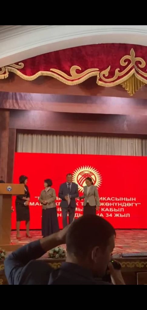 23-сентябрь Мамлекеттик тил майрамына карата мерия тарабынан өткөрүлгөн “Устат-шакирт” концерттик программасында өзгөчөлөнгөндугу үчүн ыраазычылык баракчасы менен сыйлануу учуру
