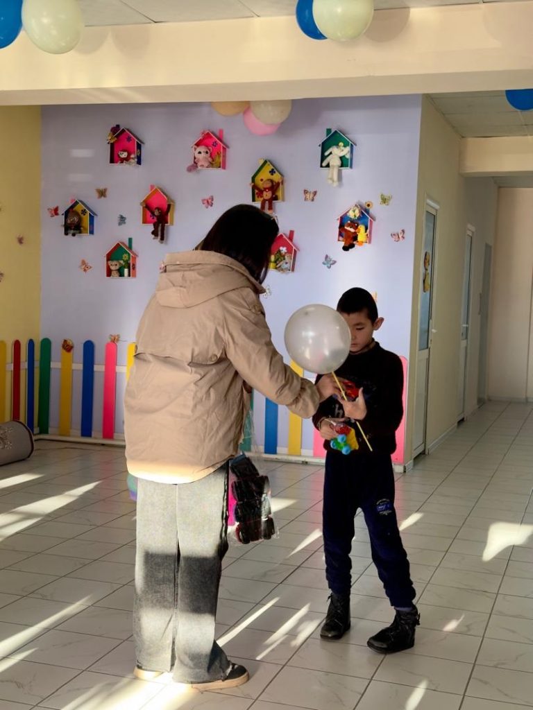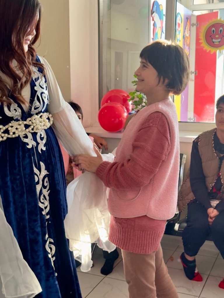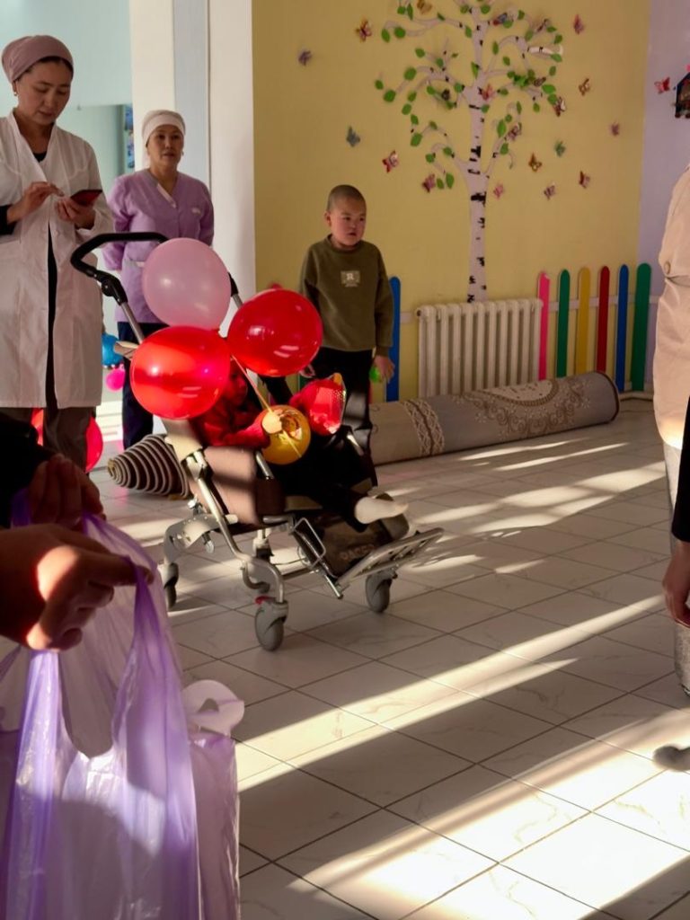 Алар Жалал-Абад шаарындагы балдар психоневрологиялык стационардык мекемесиндеги балдарды мүмкүнчүлүгү чектелген адамдардын эл аралык күнү менен куттуктап, кайрымдуулук акциясында чогулган каражатка балдарга памперстер, оюнчуктар жана таттуу-шириндиктер алынып, балдарга таратылып берилди.